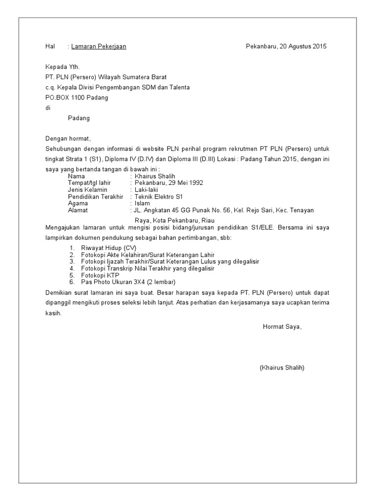 Contoh surat lamaran kerja via email secara resmi yang menarik baik dan benar. Cara mudah membuat cv untuk keperluan melamar pekerjaan adalah memanfaatkan format yang sudah ada dalam program microsoft word office. Anda sedang membuka postingan contoh surat lamaran kerja via email lengkap yang. Untuk dapat bekerja di bank, tidak selalu perlu memiliki pelatihan dalam pendidikan perbankan atau sejenisnya. 0 ratings0% found this document useful (0 votes).
